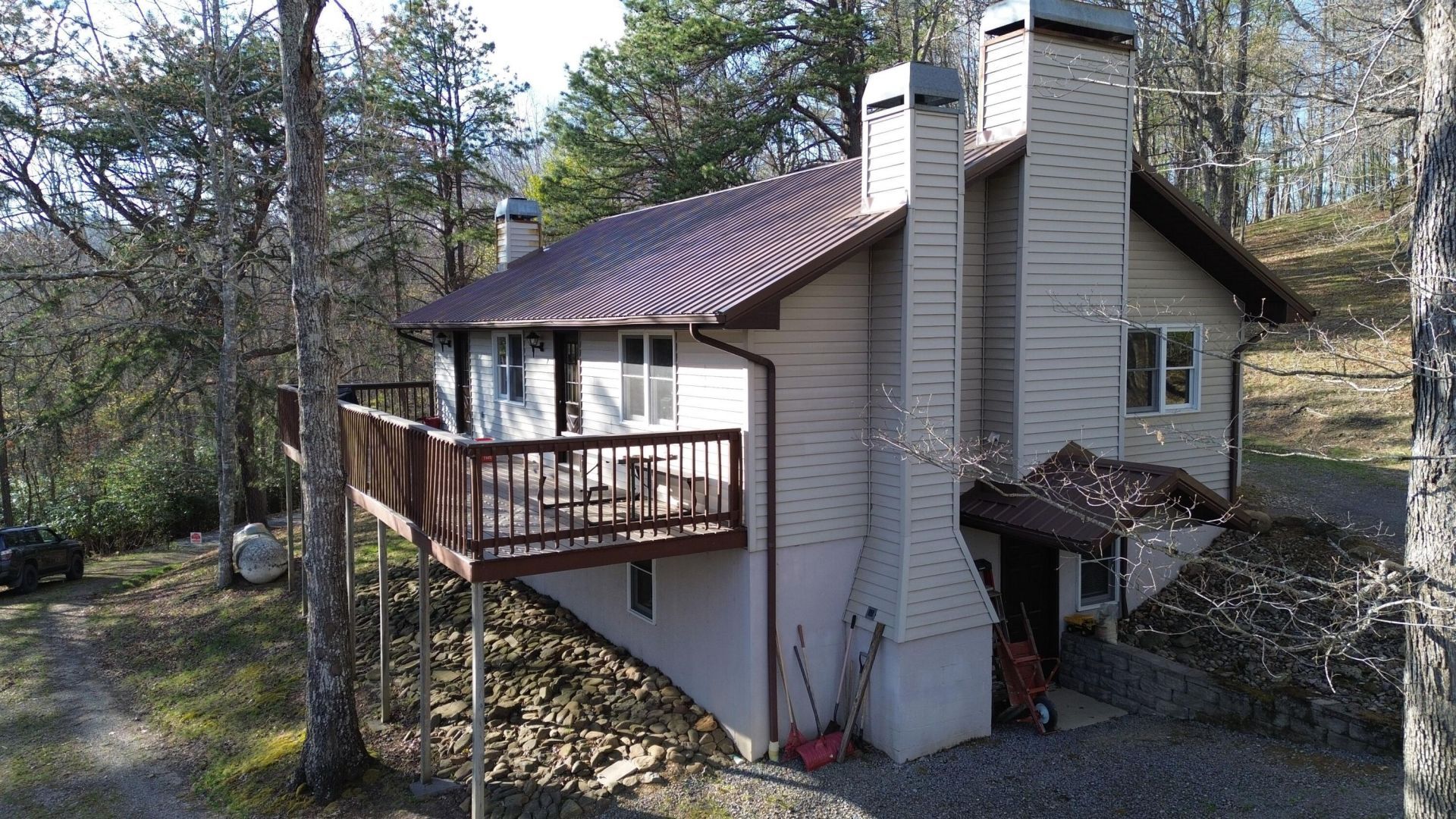 Pristine 5b 3b home boasting warm wood finishes, 3 cozy fireplaces and private 4.25 acre setting. Minutes to Greenbrier River & trail. Short drive to Snowshoe Mountain